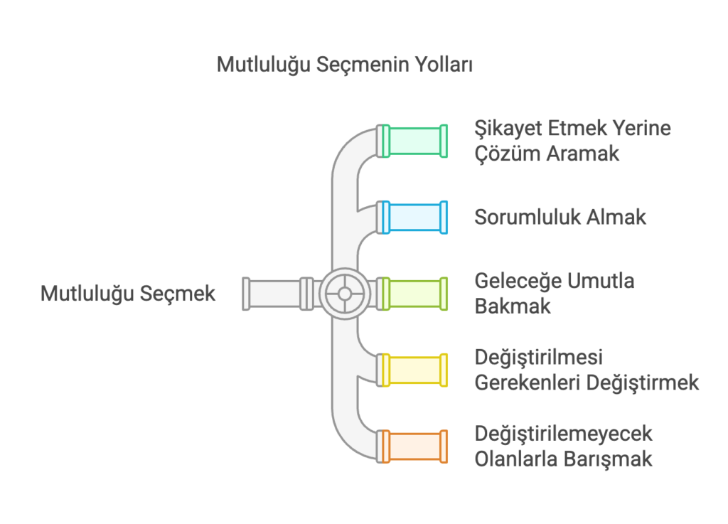 Mutluluğu seçmek, her gün verdiğimiz küçük kararlarla şekillenir. Sabah uyanıp yeni bir güne başlarken, olaylara bakış açımızı bilinçli bir şekilde yönlendirmek mümkündür. Şikayet etmek yerine çözüm aramak, başkalarını suçlamak yerine sorumluluk almak, geçmişin yükünü taşımak yerine geleceğe umutla bakmak… İşte tüm bunlar, mutluluk tercihinin yansımalarıdır.
